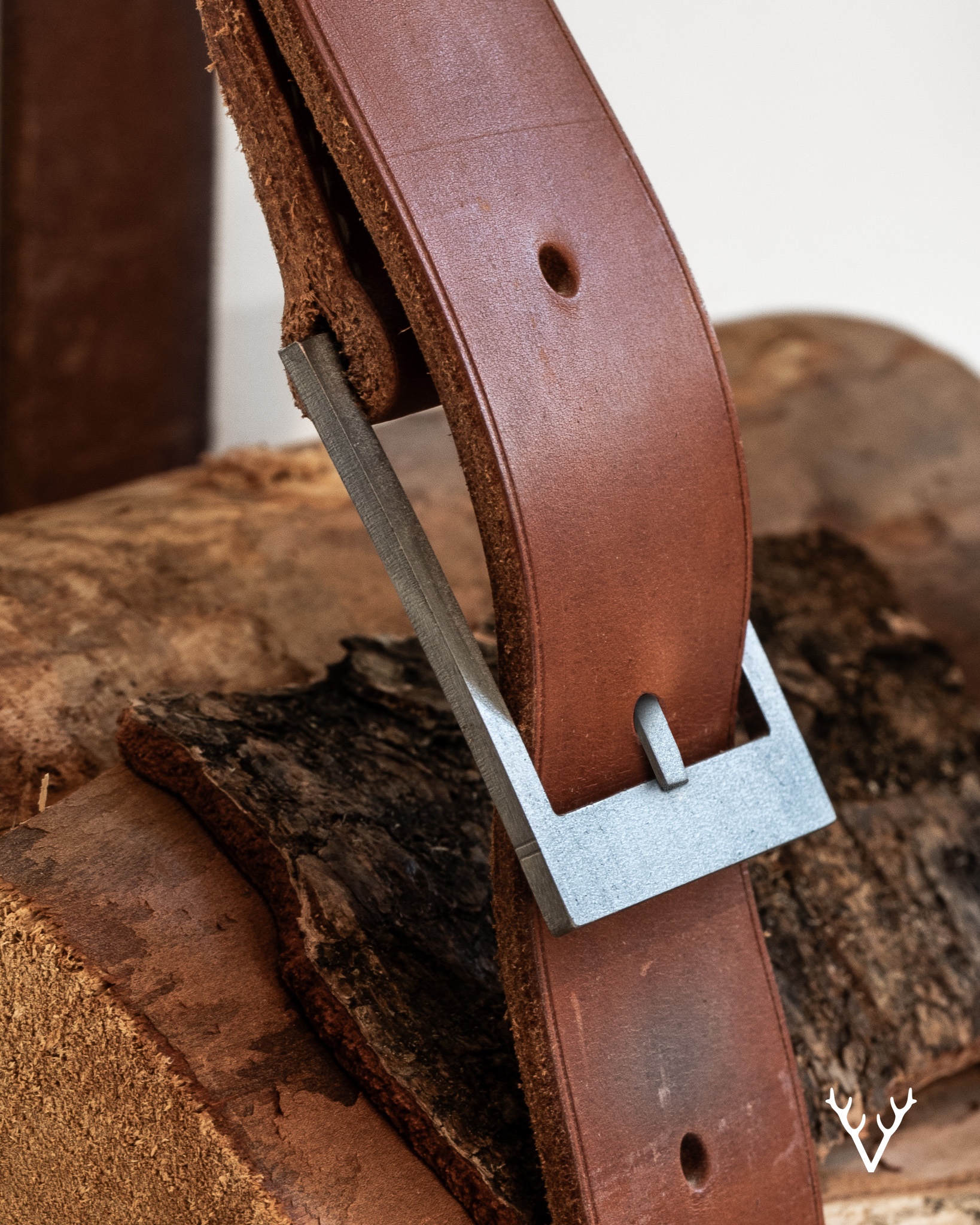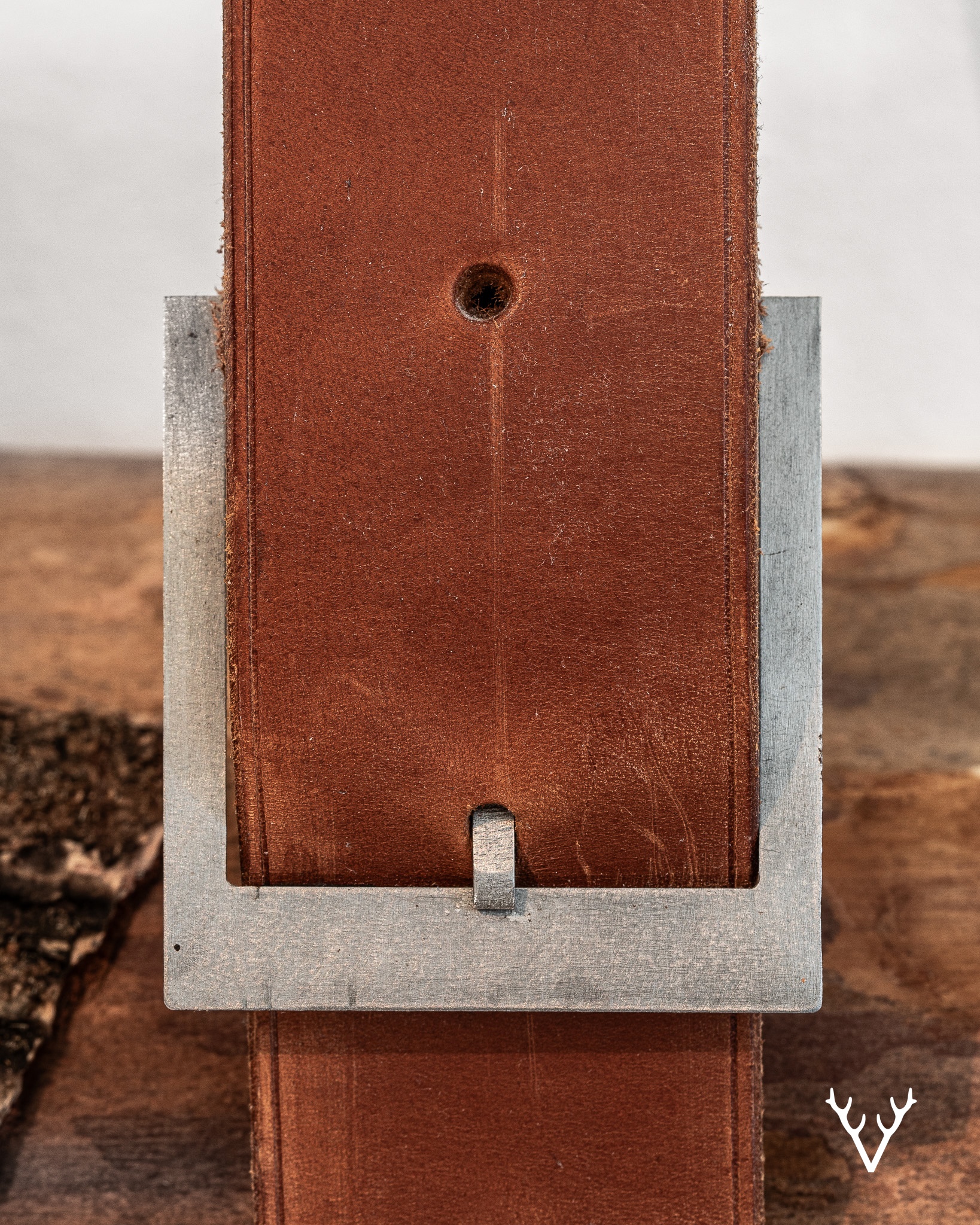 Handgjort i vegetabiliskt garvat läder och kombinerat med specialritade metalldetaljer balanserar objektet ärlighet i materialen med stillsam funktionalitet. Den flexibla och kraftfulla konstruktionen låter formen anpassa sig naturligt beroende på mängden ved.